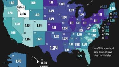 Business & Finance3 Min Read Nine9cronNovember 2, 2025 Where US Families Are Most Strained By Debt Where US Families Are Most Strained By Debt Americans are always worrying about debt: their own and their government’s. This visualization,…