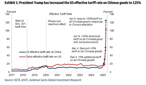 The latest high-frequency indicators from Goldman—covering consumption, mobility, production, investment, and broader macro activity—are dated as of April 3, coinciding with President Trump’s “Liberation Day” tariff blitz targeting China and other global trading partners.