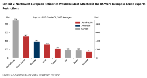 • Although not our base case, a hypothetical ban on US oil exports would meaningfully reduce supply of crude in Northwest Europe and South Korea (Exhibit 2) and of diesel and gasoline in Mexico, Northwest Europe, and South Korea (Exhibit 3).