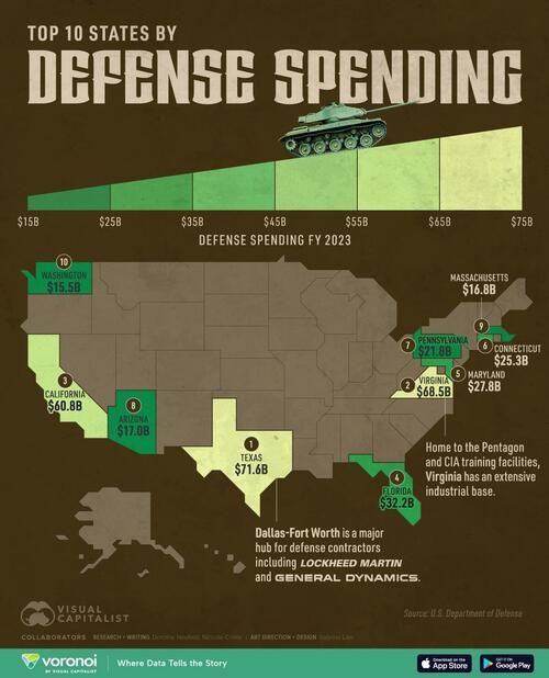 These Are The Top 10 US States By Defense Spending